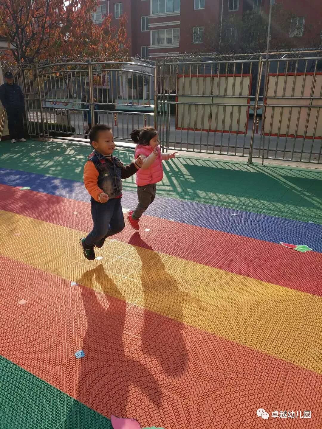 户外运动是孩子们亲近阳光和空气,强健体魄的有效手段。户外运动不仅锻炼了孩子们肢体的协调性,提高了孩子们身体的免疫力,增强了对疾病的抵抗力,还很好的满足了孩子好动与探究的本性。